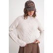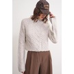 6855 Kadın Dik Yaka Saç Örgülü Triko Kazak Taş Taş