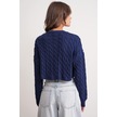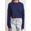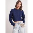 6863 Kadın Saç Örgülü Crop Triko Kazak Lacivert Lacivert