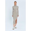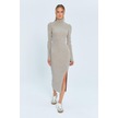 6889 Kadın Balıkçı Yırtmaçlı Uzun Triko Elbise Taş Taş