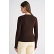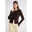 6931 Kadın Düğmeli Fitilli Triko Hırka Kahve Kahve