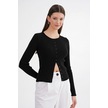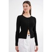 6931 Kadın Düğmeli Fitilli Triko Hırka Siyah Siyah