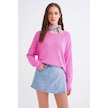 6933 Kadın Kayık Yaka İnce Mevsimlik Triko Kazak Pembe Pembe
