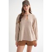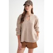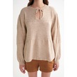 6950 Kadın Yakası Bağcıklı Pileli Triko Kazak Bej Bej