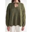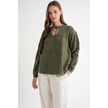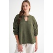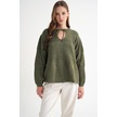 6950 Kadın Yakası Bağcıklı Pileli Triko Kazak Haki Haki