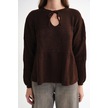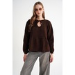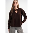 6950 Kadın Yakası Bağcıklı Pileli Triko Kazak Kahve Kahve