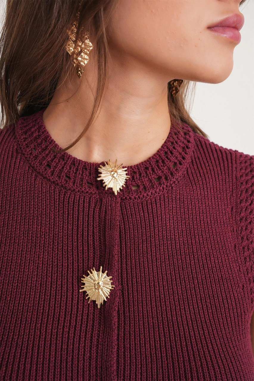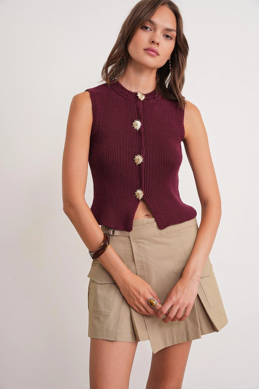 6962 Kadın Gold Düğmeli Triko Yelek Bordo Bordo