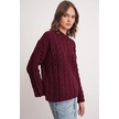 6973 Kadın Saç Örgülü Regular Basic Triko Kazak Bordo Bordo