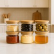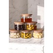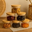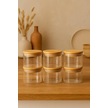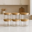 6'lı Borosilikat Cam Kahvaltılık Seti - Sızdırmaz Silikonlu Bambu Kapak - 90 X 70 Mm-400 Ml Beyaz
