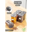 6'lı Etiketli Ve Kilitlenebilir Hava Almaz Kapaklı Baharatlık Seti - Baharatlık Gri Antrasit