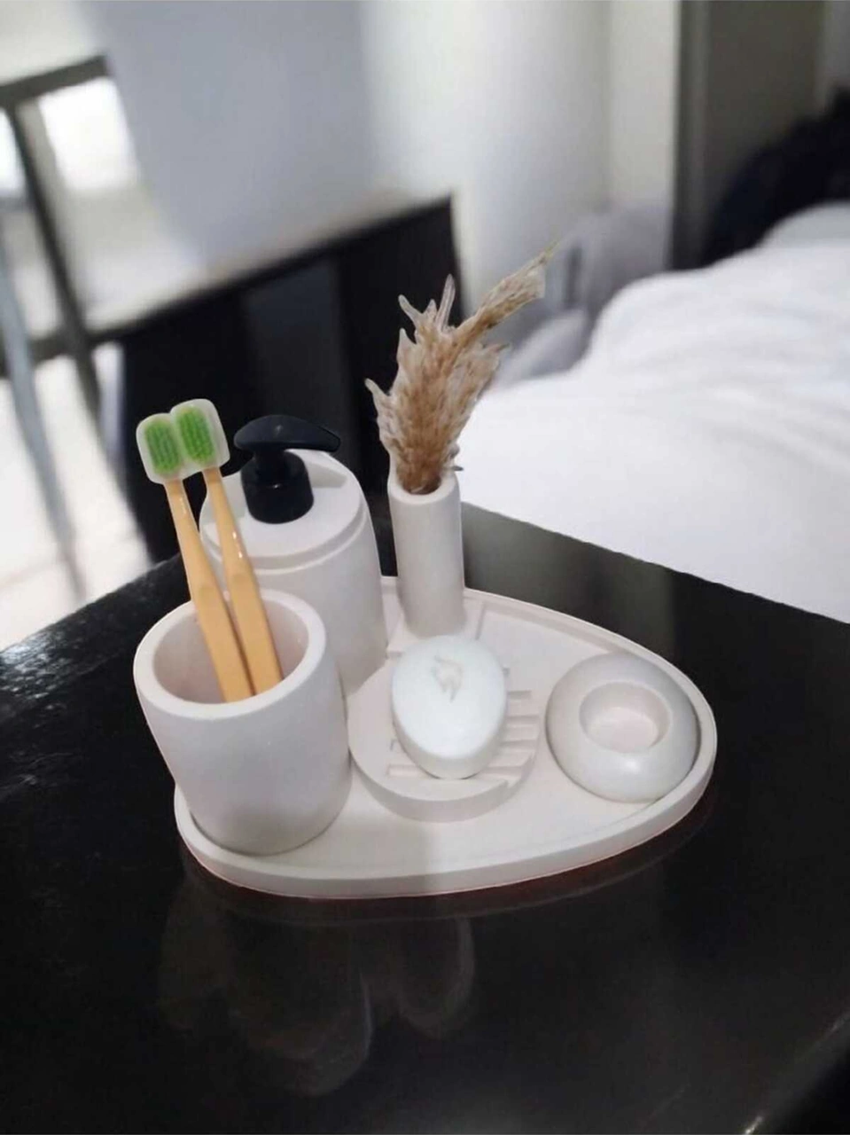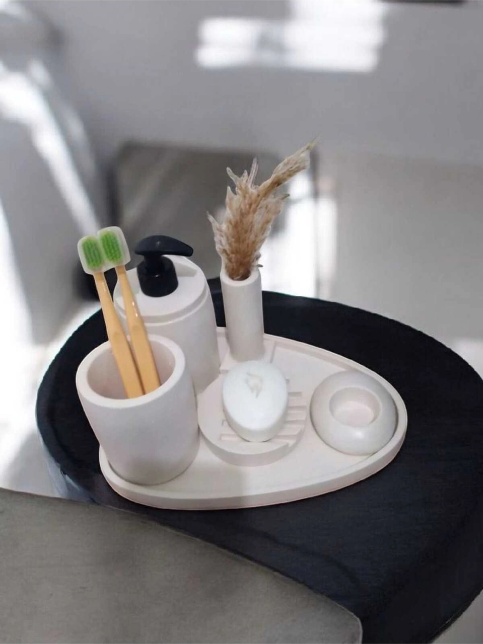 6'lı Kırık Beyaz Beton Banyo Seti Sıvı Sabunluk Diş Fırçalığı ,tepsili,mumluklu Aksesuar Takım Beyaz