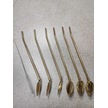 6'lı Paslanmaz Krom Pipetli Kokteyl Bar Kaşığı Ve Temizleme Fırçası, Pipetli Latte Kaşığı 22 Cm - Altınsarı