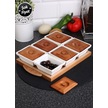 6'lı Seramik Gövdeli Ahşap Kapaklı Tepsi Beyaz Kahvaltı Takımı Beyaz