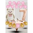 7 Yaş Retro Folyo Krem Ayıcık Pembe Gold Balon Rose Gold Rakam Doğum Günü Süsleme KREM