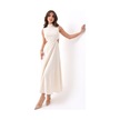 Eteği Volanlı Uzun Elbise Kırık Beyaz