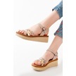 730-015 Bej Multi Ortopedik Hakiki Deri Dolgu Kadın Sandalet Bej