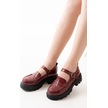 745-771 Bordo Rugan Kadın Günlük Yüksek Tabanlı Loafer Ayakkabı Beyaz