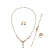 7,5 Mm Zirkon Taşlı İnci Kolye Bilelik Küpe Yüzük Dörtlü Set 8 / Rose Gümüş