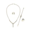 7,5 Mm Zirkon Taşlı İnci Kolye Bilelik Küpe Yüzük Dörtlü Set 8 / Sarı Gümüş