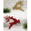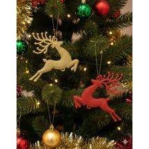 8 Cm 2'li Kırmızı Gold Simli Geyik Model Yılbaşı Ağaç Süsü Dekoratif Set