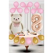 8 Yaş Retro Folyo Krem Ayıcık Pembe Gold Balon Rose Gold Rakam Doğum Günü Süsleme KREM