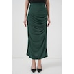 8035 Büzgülü Midi Etek - Zümrüt Yeşili Zümrüt