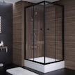 80x80x190 Kare Siyah Profil Şeffaf Cam Duş Kabini & 80x80x16 Panelli Duş Teknesi Set Krom