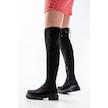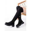 812-2194 Siyah Süet Fermuarlı Diz Üstü Bağcıklı Çorap Günlük Kadın Çizme Resimdeki Renk