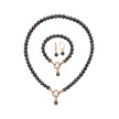 8,5 Mm Zirkon Taşlı Halka Kilitli Doğal İnci Küpe Kolye Bileklik Üçlü Set 40 Cm / Rose Gümüş