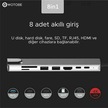 8'i 1 Arada 4k 60hz Usb Type C Sd Tf Hdtv Rj45 Dönüştürücü Hub