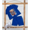 9-12-18-24 Ay Dansçı Ayıcık Baskılı Şortlu Kısa Kollu Tişört 2li Erkek Bebek Takımı Saks Mavisi