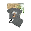 9-12-18-24 Ay Hello Gözlüklü Ayıcık Baskılı Şortlu Kısa Kollu Tişört 2li Erkek Bebek Takımı Gri