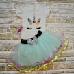 9-12-18 Ay Payetli Pony Nakışlı Tokalı Kısa Kollu Tütü Etek 3lü Kız Bebek Takımı Su Yeşili