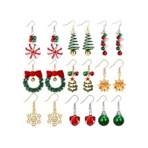 9 Parçadan Oluşan Set, Yeni Noel Küpeleri 2025: Taçlı, Ren Geyiği Ve Noel Şapkalı Noel Baba Küpeleri.