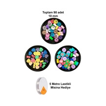 90 Adet 10 Mm Polimer Kil Fimo Boncuk Takı Bileklik + 5 Metre Misina Hediye - Kalp - Deniz - Çiçek