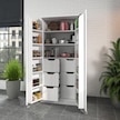 90 Derece Açılabilir 2 Kapaklı, 6 Çekmeceli, Kavanoz Raflı Kiler Ve Erzak Mutfak Dolabı Beyaz