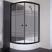 90x90x190 Oval Siyah Profil Komple Kumlu Cam Duş Kabini & 90x90x16 Panelli Duş Teknesi Set Krom