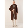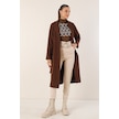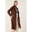 9118 Kruvaze Yaka Kaşe Kaban - Kahverengi Kahverengi