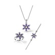 925 Ayar Ametist Taşlı Rodyum Lotus Çiçeği 3'lü Gümüş Set Gümüş