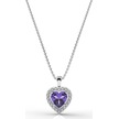 925 Ayar Ametist Taşlı Rodyum Pırlanta Görünümlü Kalp Gümüş Kolye Gümüş - Rodyum