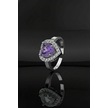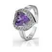 925 Ayar Ametist Taşlı Rodyum Pırlanta Işıltılı Kalp Ayarlanabilir Gümüş Yüzük Gümüş