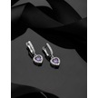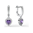 925 Ayar Ametist Taşlı Rodyum Pırlanta Işıltılı Sallantılı Kalp Gümüş Küpe Gümüş