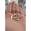 925 Ayar Gümüş 24 Ayar Altın Kaplama Isimli Kalpli Gül Kolye