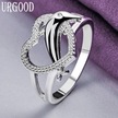 925 Ayar Gümüş Aaa Zirkon Yunus Kalpli Yüzük Moda Takı 10