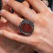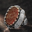 925 Ayar Gümüş Akik Taş Üzeri Ayetel Kürsi Yazılı Dualı Büyük Boy Usta İşi Erkek Yüzük Gümüş