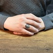 925 Ayar Gümüş Oniks Taşlı Tuğralı Erkek Yüzük - 553966439