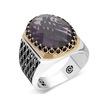 925 Ayar Gümüş Ay Yıldız Detaylı Ametist Taşlı Erkek Yüzük - 556400377