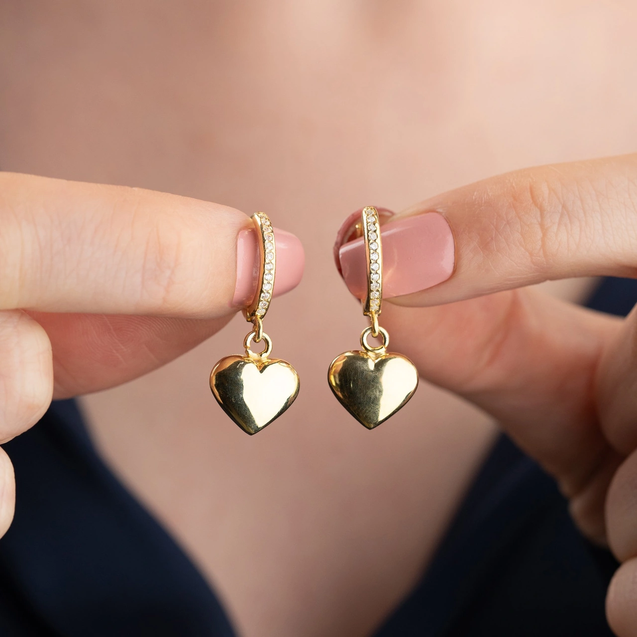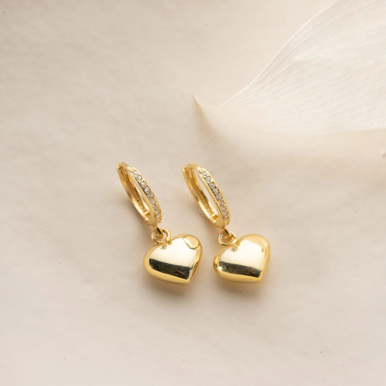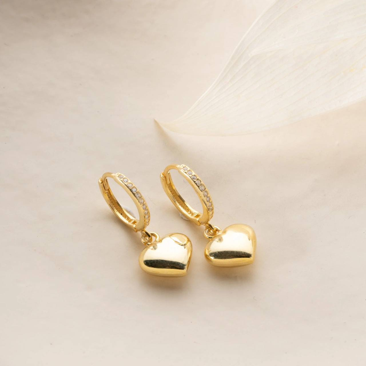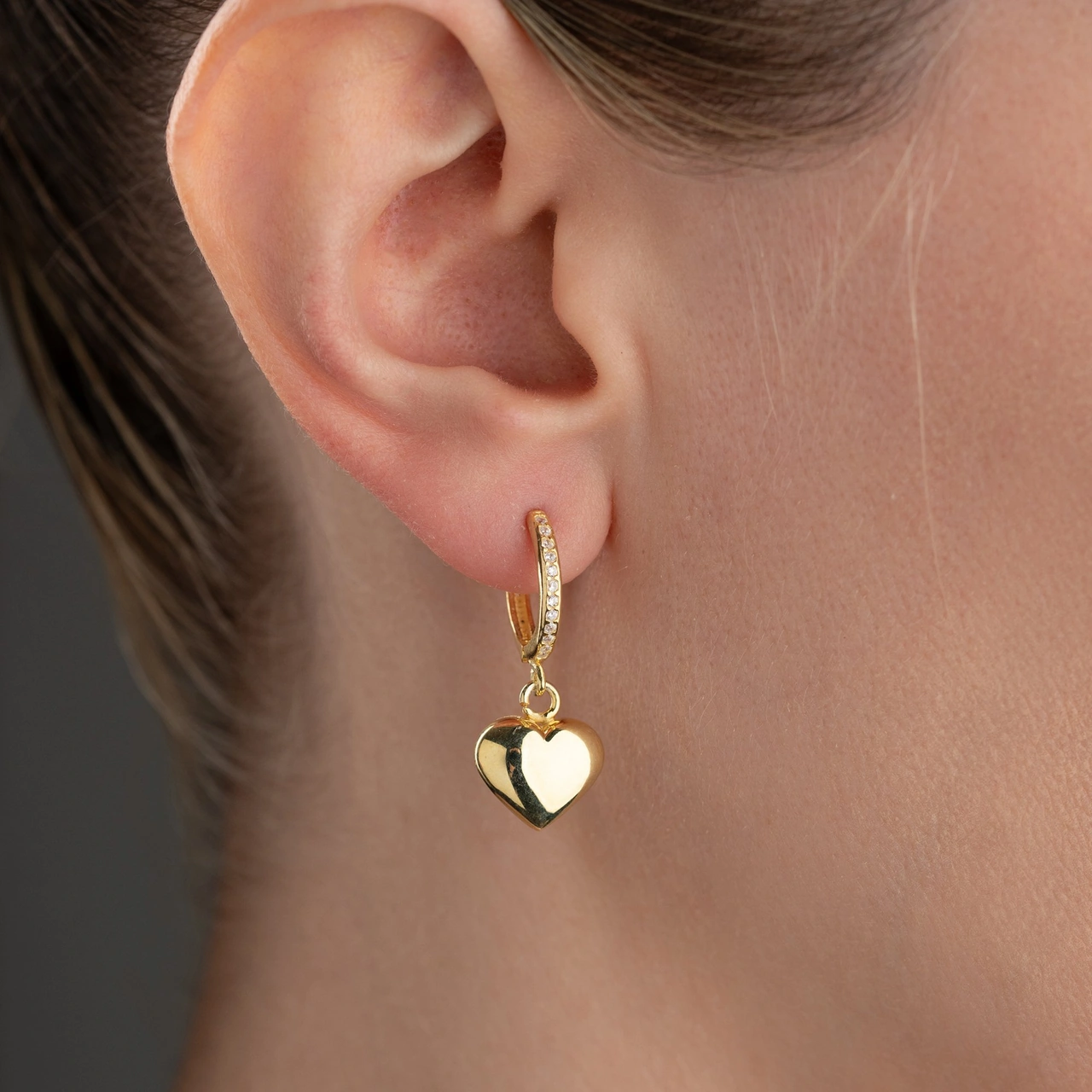 925 Ayar Gümüş Bombeli Sallantılı Kalp Küpe Altın