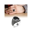 925 Ayar Gümüş Kartal Motifli Çember Onix Taşlı Erkek Yüzük