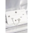 925 Ayar Gümüş Çivi Pirinç Gümüş Renk Zirkon Taşlı Yonca Model Sallantı Zincir Detay Kadın Küpe Seti Çok Renkli