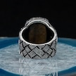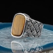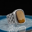 925 Ayar Gümüş Dikdörtgen Kaplan Gözlü Taşlı Örgü Desenli Erkek Yüzük Gümüş